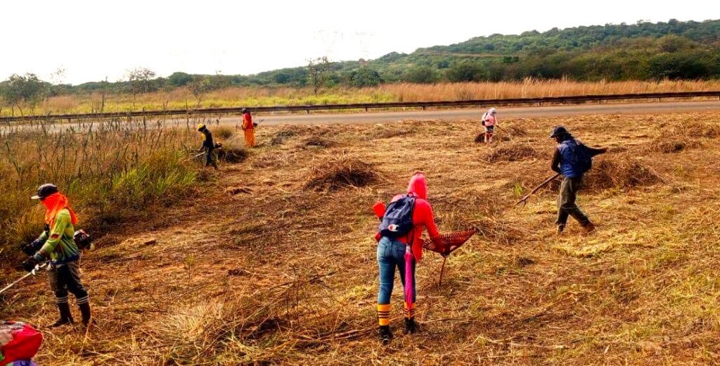Un contingente de 75 trabajadores está desplegado, ejecutando labores de desmalezamiento y poda controlada para garantizar la seguridad de los conductores.