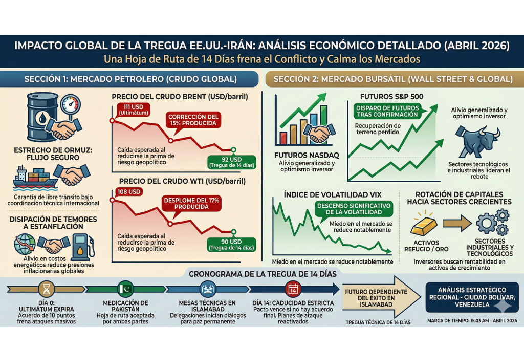 En Wall Street, los futuros del S&P 500 y el Nasdaq se dispararon tras la confirmación del pacto, recuperando gran parte del terreno perdido durante las semanas de máxima tensión bélica. Aunque el índice de volatilidad VIX registró un descenso significativo, los analistas financieros advierten que la estabilidad de las bolsas dependerá del éxito de las mesas técnicas en Islamabad. Por ahora, los inversores han rotado capitales desde activos refugio como el oro hacia sectores industriales y tecnológicos, anticipando una reapertura segura de las rutas comerciales más críticas del mundo.