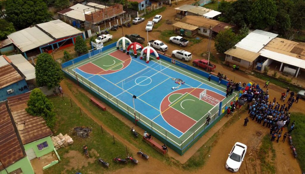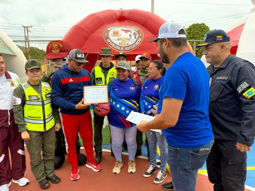 Este viernes, se desplegó un equipo multidisciplinario para la entrega formal de la infraestructura, así como de implementos y kits deportivos destinados a niños, niñas y adolescentes de la zona. La gobernadora del estado Bolívar, Yulisbeth García, coordinó el despliegue político en perfecta fusión con la Corporación Venezolana de Minería (CVM), los ministerios de Desarrollo Minero Ecológico, Relaciones Interiores, Justicia y Paz, Juventud, y la Guardia del Pueblo.