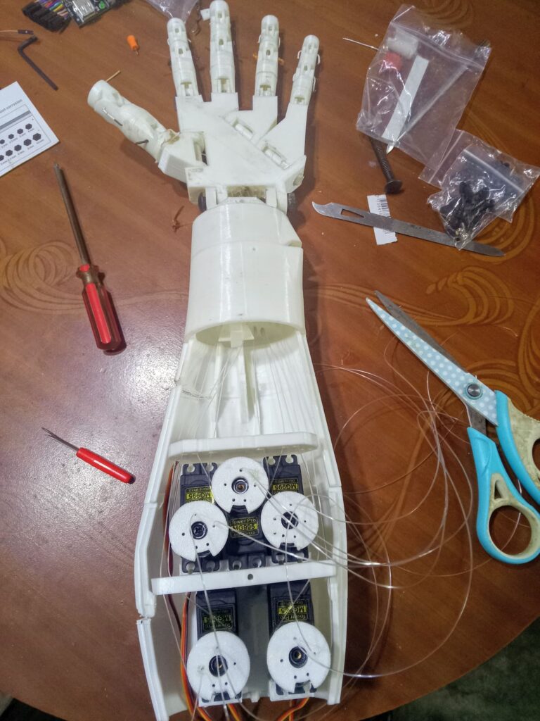 - Impresión 3D: la estructura física fue fabricada mediante manufactura aditiva, ajustando archivos STL para adaptar el movimiento de los dedos al lenguaje de señas.